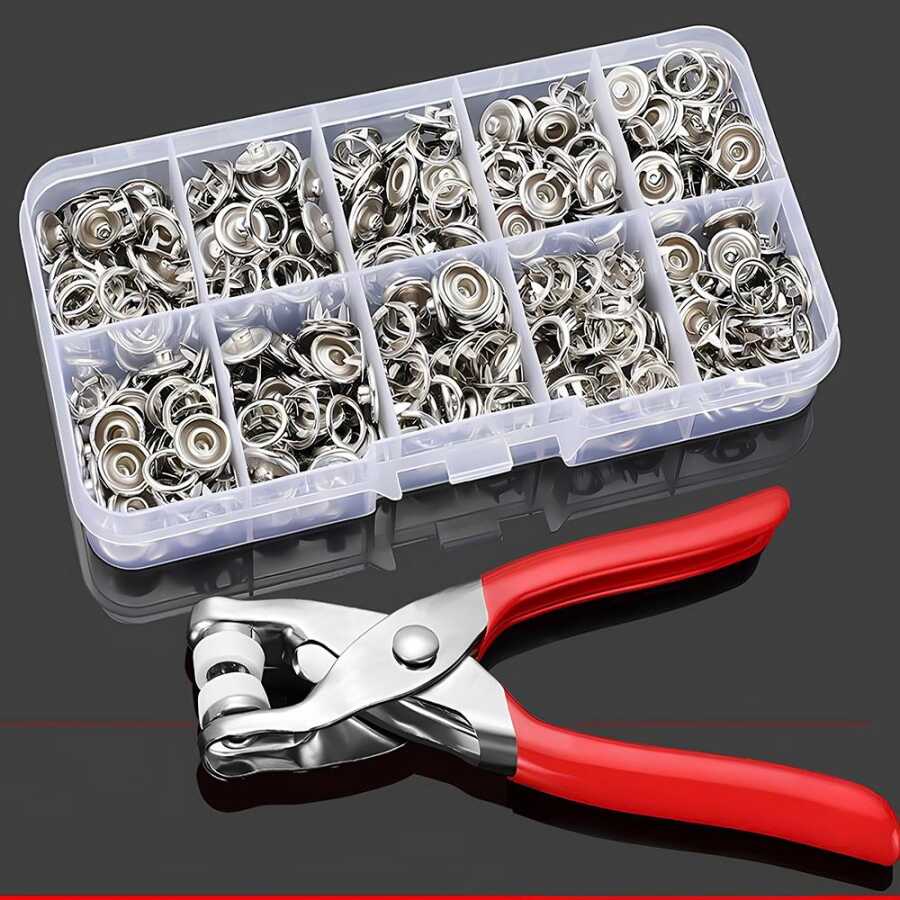 9.5 mm Metal Çıt Çıt Düğme Takma El Pensesi 100 Adet Metal Çıt Çıt Çakım Seti ve Saklama Kutusu: