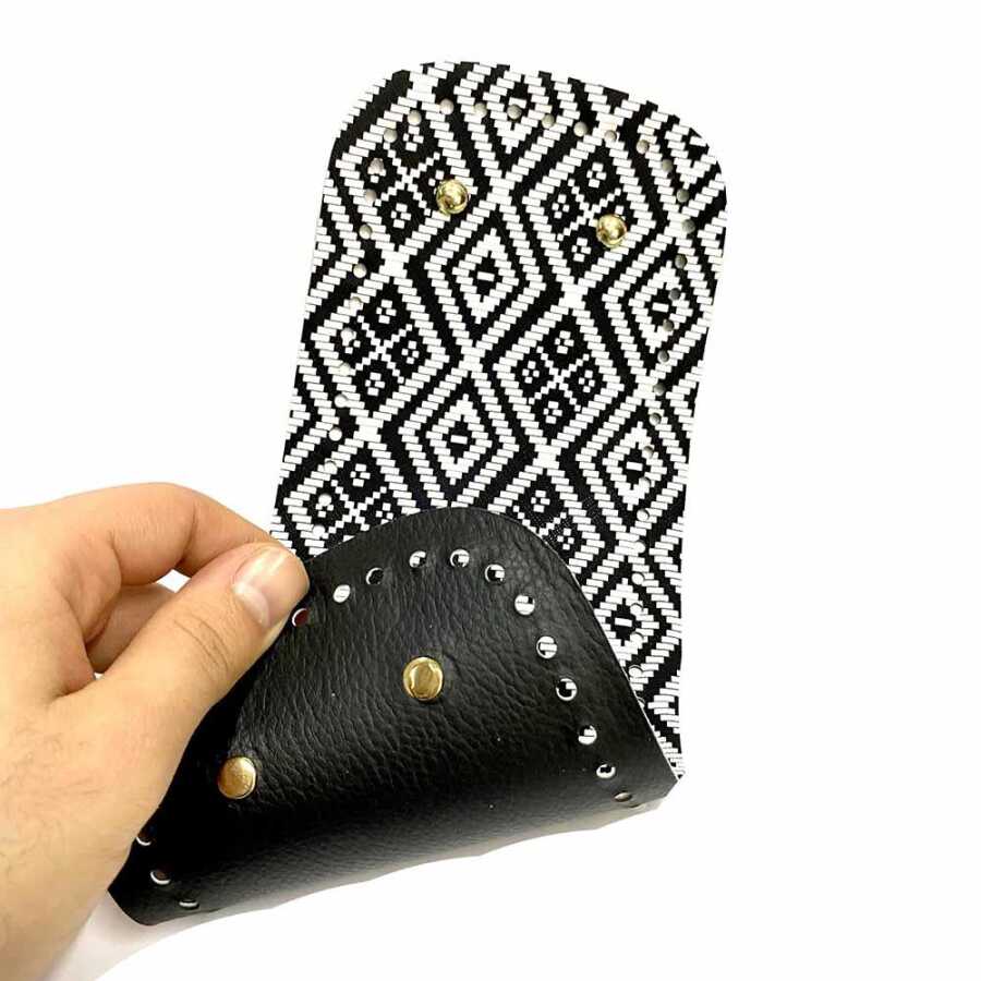 Desenli Deri Çanta Tabanı Deri ( 12x30 Cm ) Siyah Mozaik