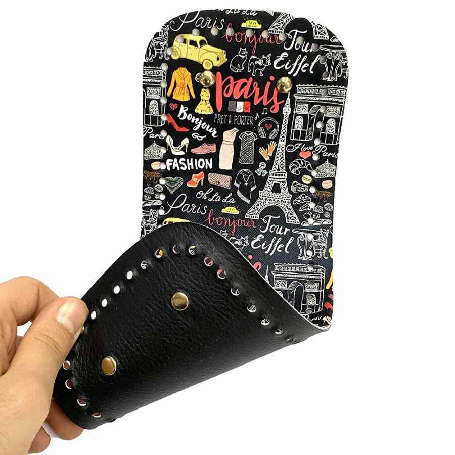 Desenli Deri Çanta Tabanı Deri ( 12x30 Cm ) Siyah Paris