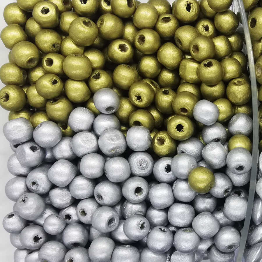 Emzik Zinciri Ahşap Halka Yuvarlak Mini Altın-Gümüş ( 10 Adet )