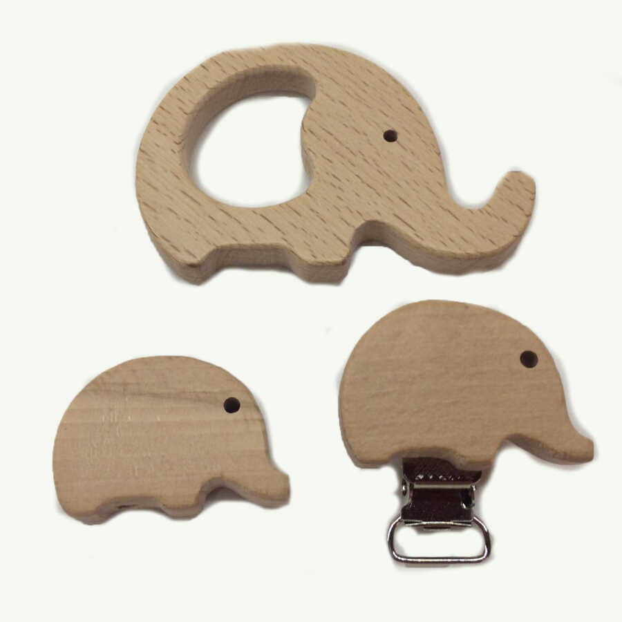 Figürlü Ahşap Emzik Klipsi Fil (Kayın Agacı)