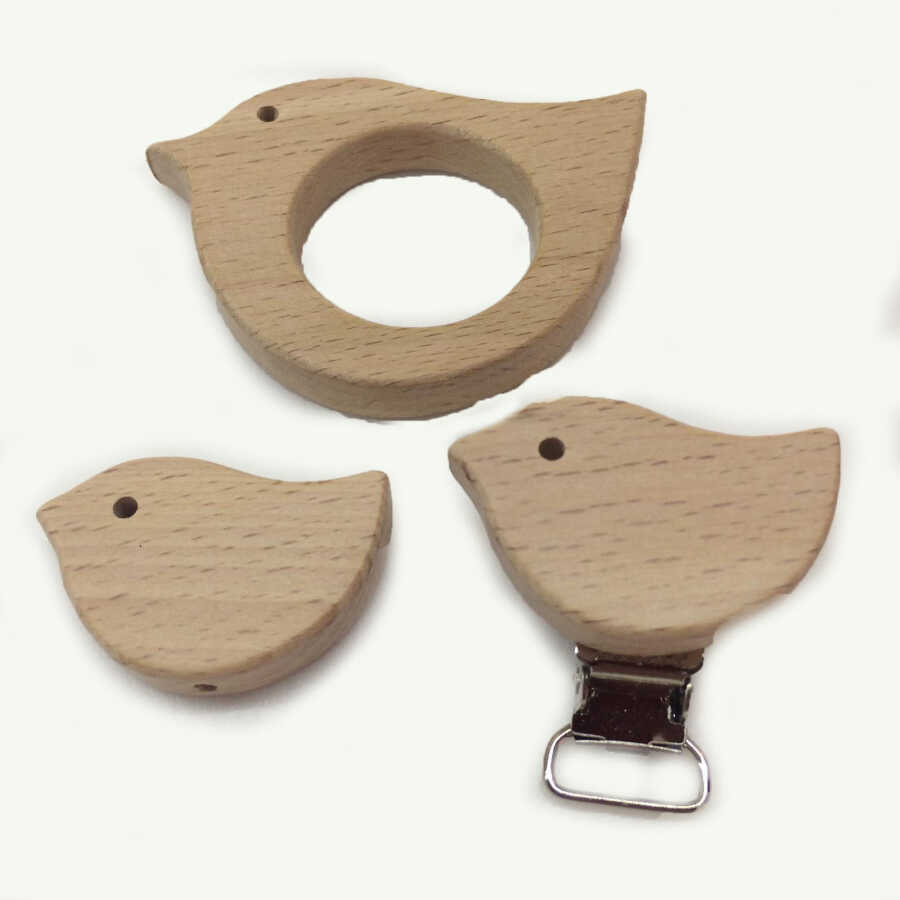 Figürlü Ahşap Emzik Klipsi Kuş (Kayın Agacı)