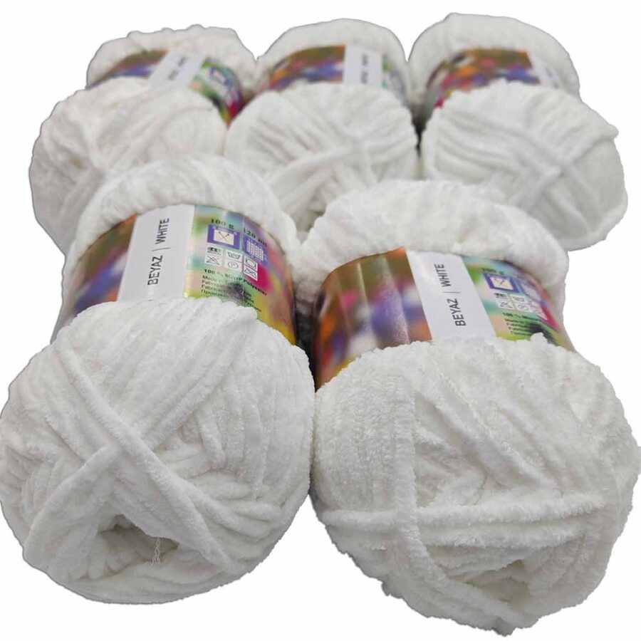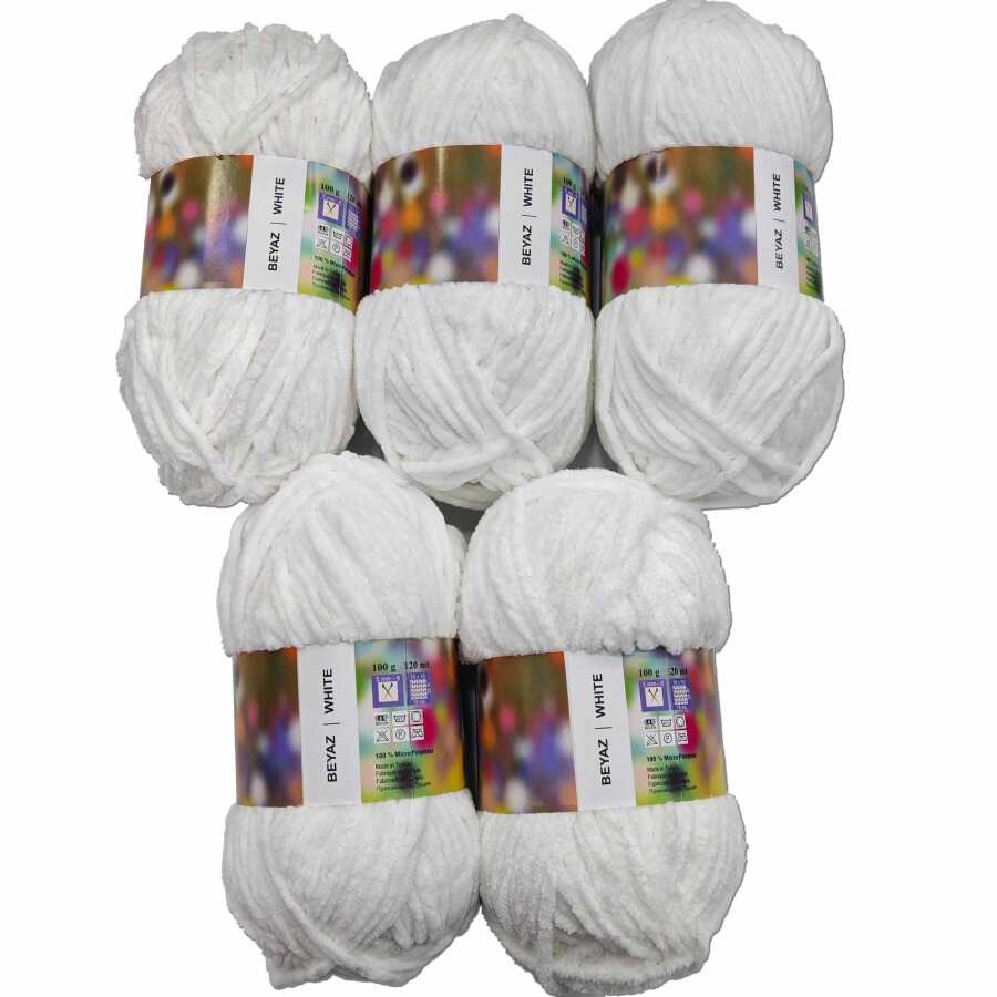 İhraç Fazlası Kadife Örgü İpi ( 5 Adet ) Beyaz