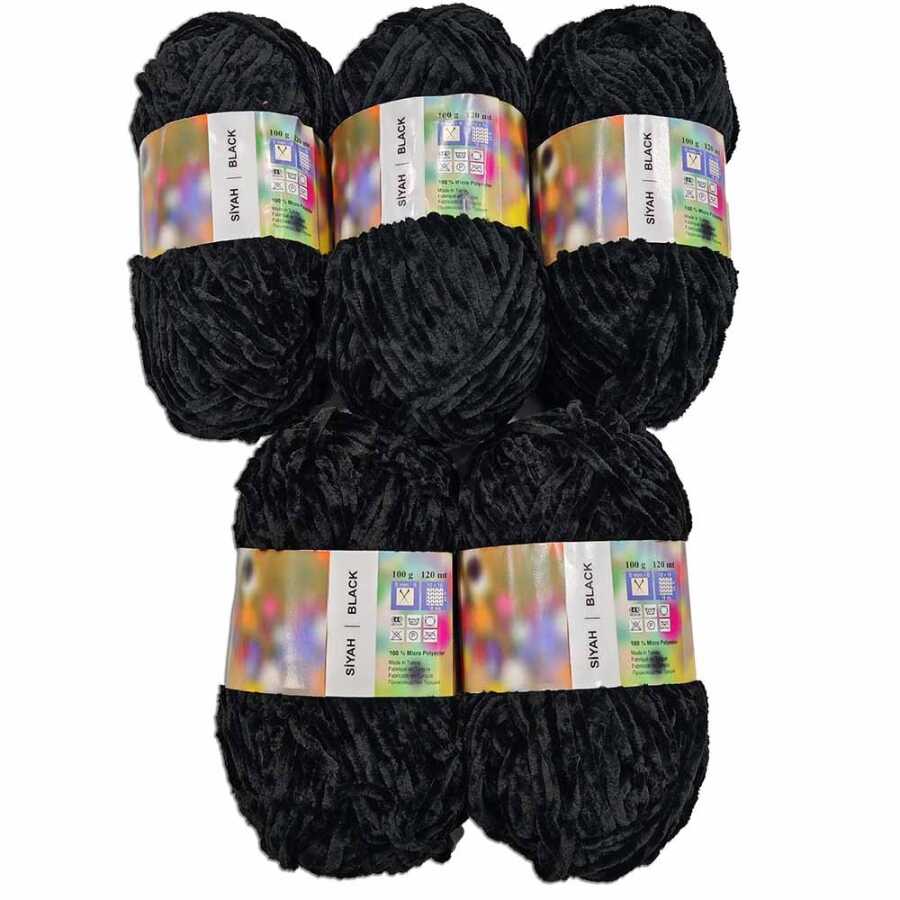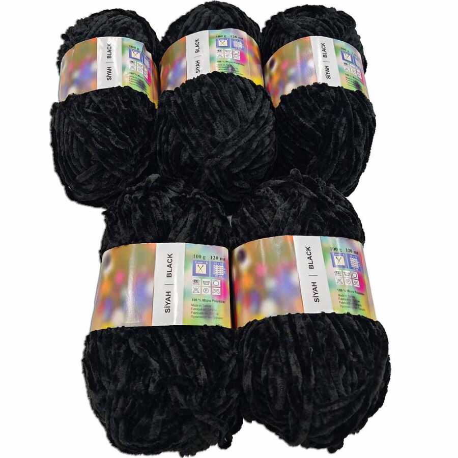 İhraç Fazlası Kadife Örgü İpi ( 5 Adet ) Siyah