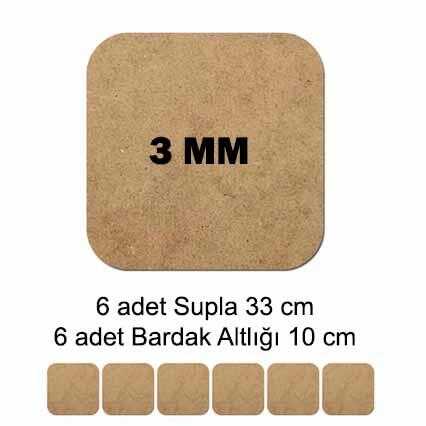 - 6 adet Supla 33*33 cm- 6 adet Bardak Altlığı 10*10 cm
