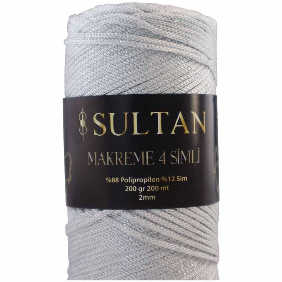 Gelince Haber VerNO:4 Simli Polyester Makrome İpi ( 200 Gr ) 1001 Gümüş
