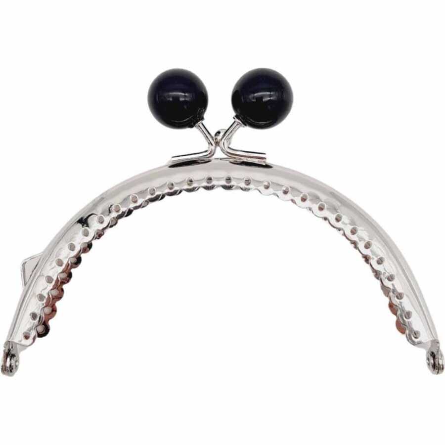 Siyah İnci Taşlı Askılı Cüzdan Klipsi Oval Gümüş ( 1 Adet )
