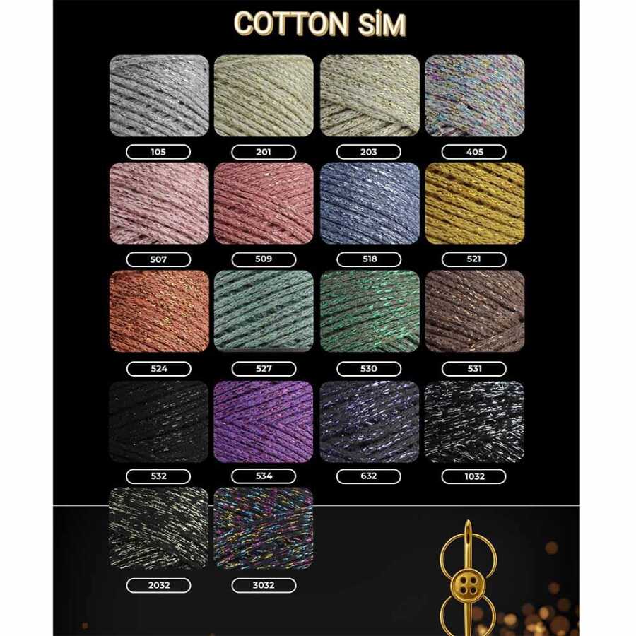 Cotton Sim makrome ipi, pamuk içerikli, genellikle hafif parlak (simli) bir yüzeye sahip olan, el işleri ve dekoratif çalışmalar için üretilmiş özel bir ip türüdür.