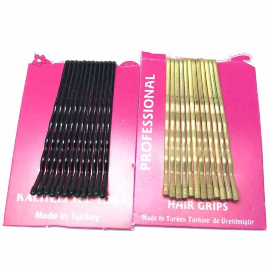 - Sinuoni Siyah İnce Tel Saç Tokası 12 Adet