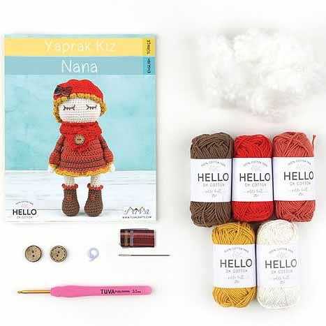 Bu kitin içerisinde resimdeki sevimli amigurumi oyuncağı yapmak için gerekli olan tüm malzemeler ve aksesuarlar mevcuttur.